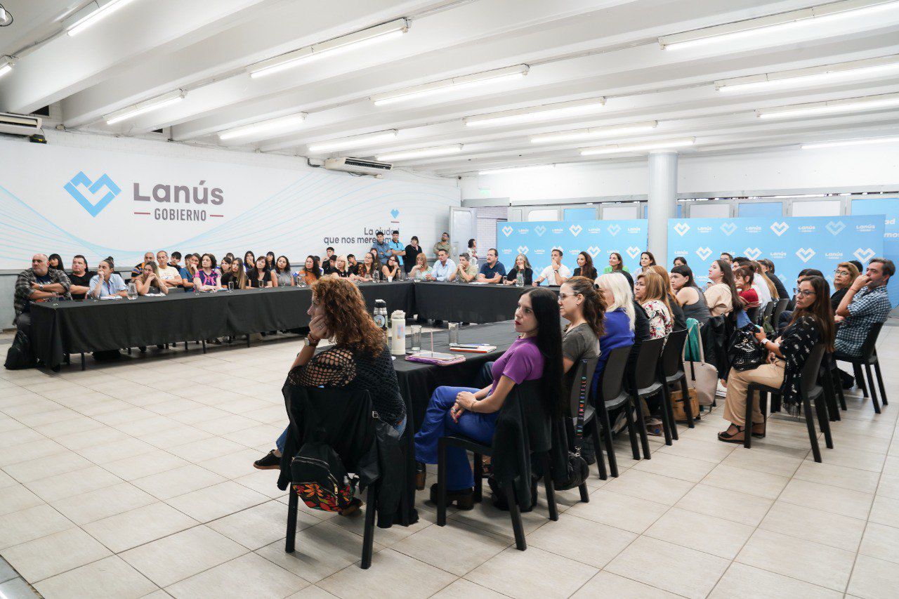 El intendente de Lanús, Julián Álvarez, encabezó una reunión con diversos directivos de hospitales y escuelas del distrito en el Auditorio Hugo del Carril, ubicado en el Palacio Municipal.